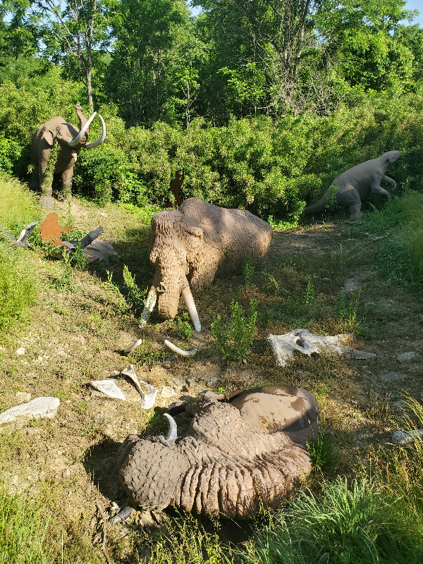 Aside from the bison, you must stop into the museum and read up on the history of the site and see some interesting skeletons and fossils. Inside the museum is the gift shop with some really neat items so be sure to stop in. You might be lucky enough to snag a souvenir of salt made from the salt springs that they make batches of during the Salt Festival in the fall. Inside you will also find very clean bathrooms. Right behind the museum is the Diorama Pit featuring some animals getting “stuck” in the muck.